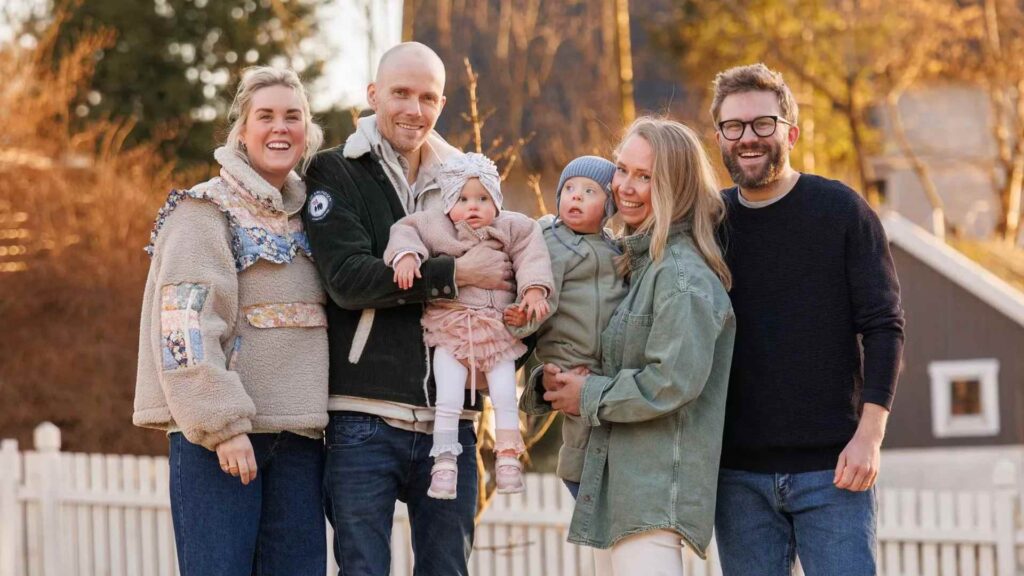 Martine og Bjørn Einar Romøren med datteren Pippi, og Jorunn og Stefan Heggelund med sønnen Noel
