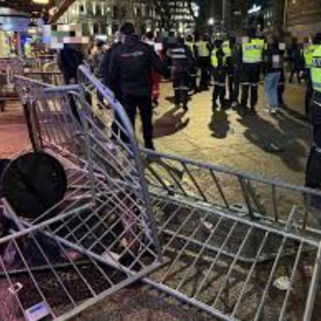 En person er sendt til legevakt med hodeskader etter et fall. Ifølge Avisa Oslo er minst én person lagt i bakken av politiet. Flere andre står rundt og filmer.